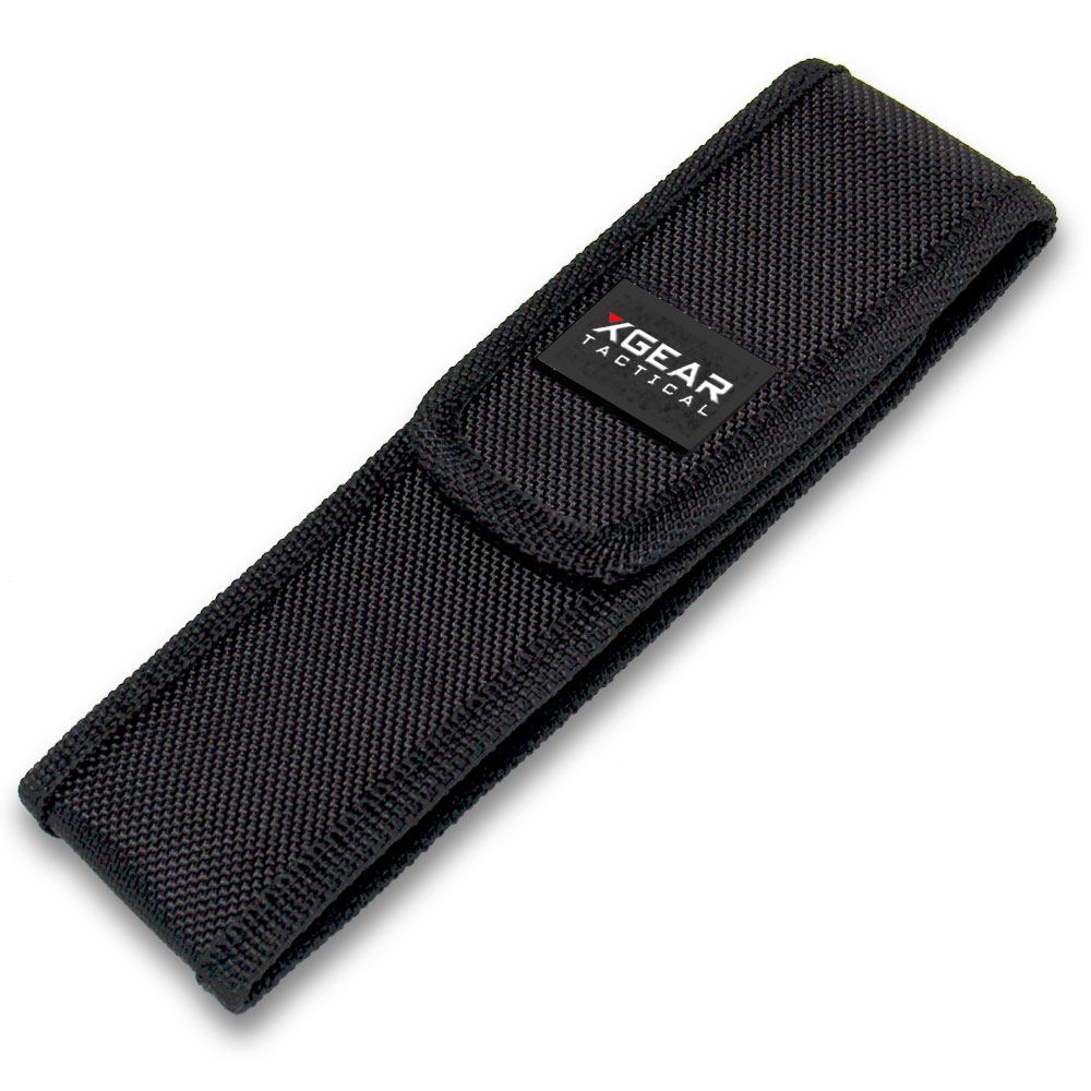 Protect Your Flashlight and Gear This LED flashlight holster with belt attachment featuring a long retention flap with Velcro closure. The quick-detach belt loop allows user to attach or remove holster without having to remove belt. Fits most medium size flashlights, tools and knives. Made of heavy-duty nylon to help keep your gear protected from damages.